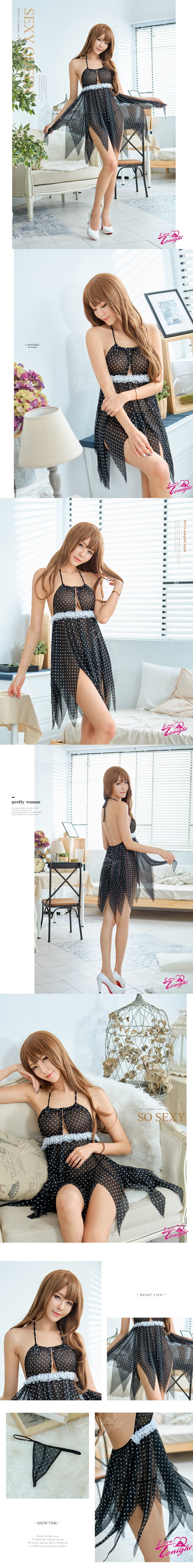 ►您現在的位置:首頁>浪漫點點蕾絲黑薄紗二件式連身裙睡衣