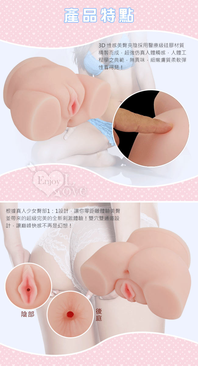 超柔軟超肉感Q嫩的矽膠材質,用雙手緊緊抓住她的腰部,把老二插入陰道,真是爽翻天,還有男人夢想中的肛門穴也都是比照真人倒模打造,陰交、肛交,她絕對不會對你說不要,只會完全順從你的旨意,讓你把她從頭幹到尾。