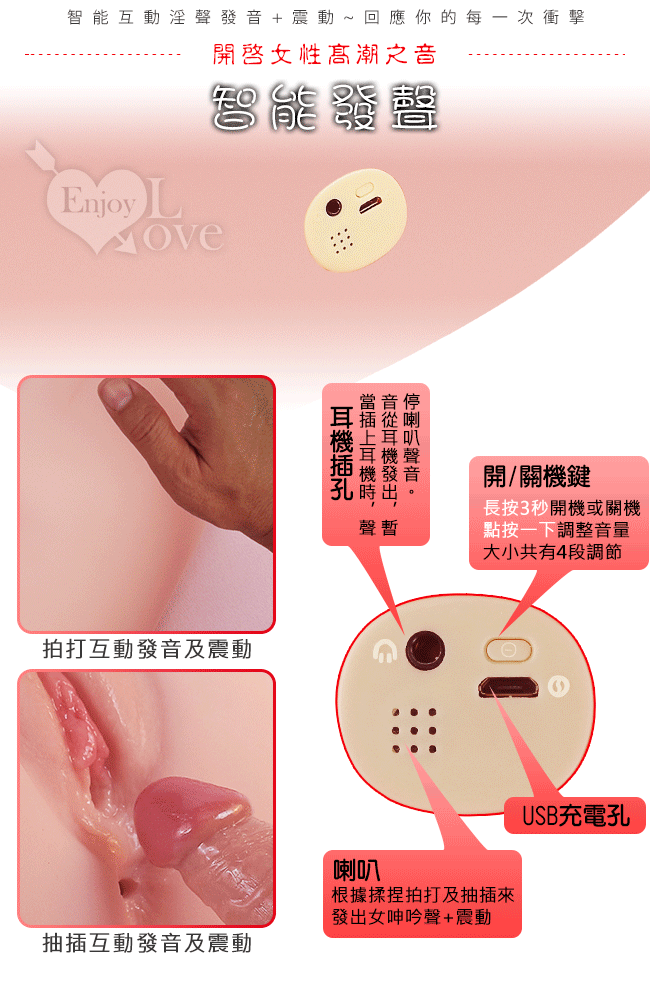 ※ 抽插、拍打即會智能互動震動+女呻吟語音臨場感十足。