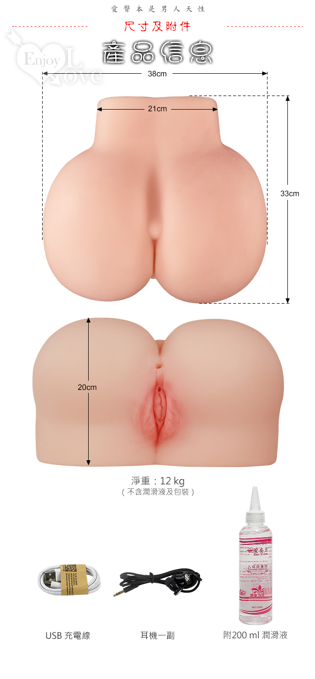 | ✦限量出清✦智能臀霸!重達12公斤擬真1:1複製 3D立體仿真雙穴超大肥臀 ﹝附耳機+200ml潤滑液﹞