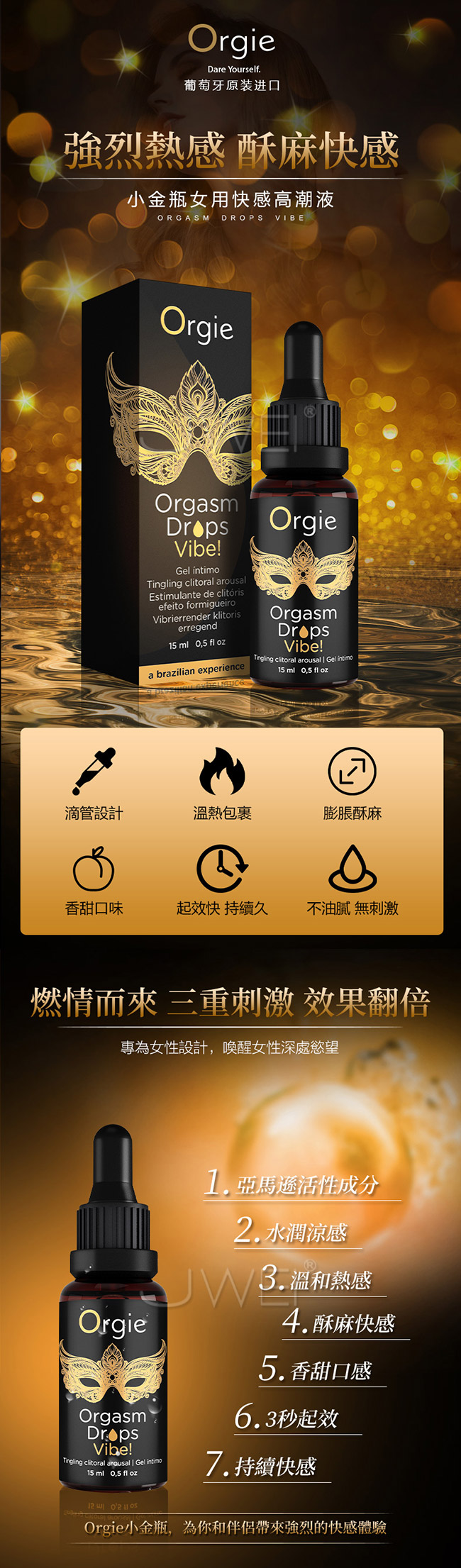| 葡萄牙Orgie.Orgasm Drop Vibe小金瓶挑逗蜜豆熱感口交凝膠-15ml