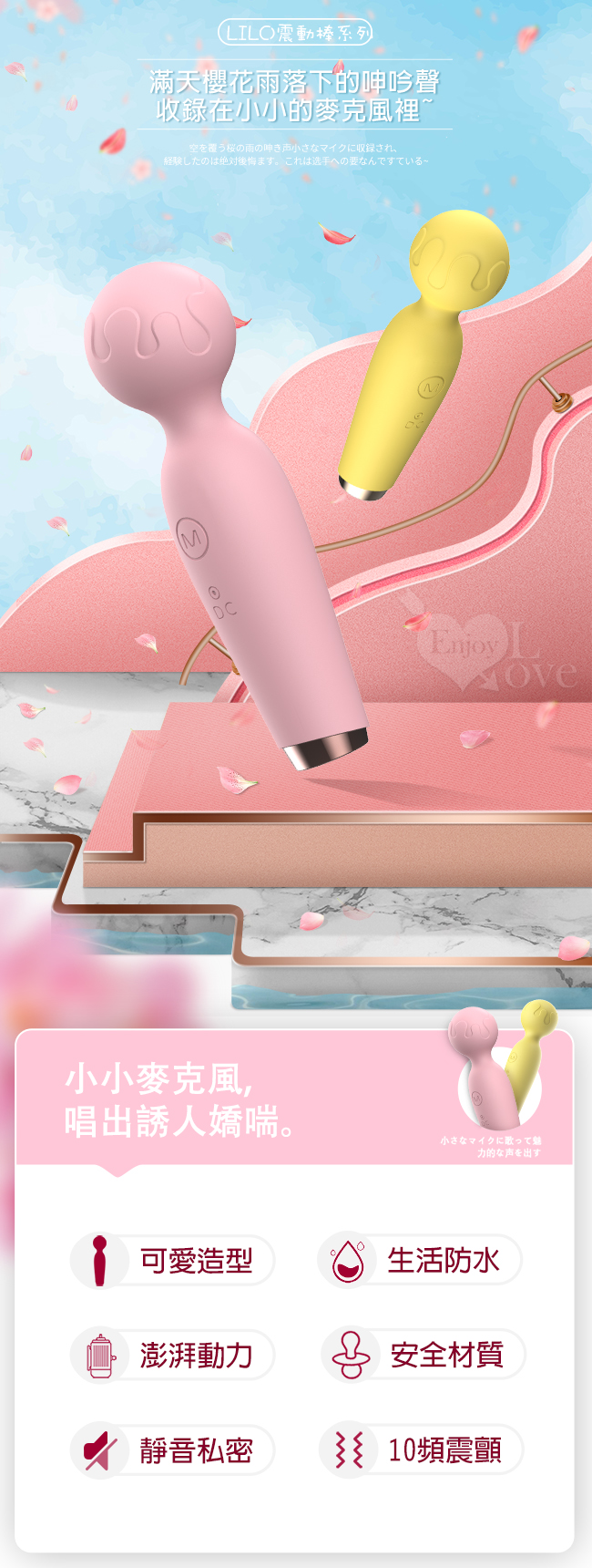| LILO快樂樂章 ‧ 小麥克風AV按摩棒 - 檸檬黃/櫻花粉﹝高速10頻+安全硅膠+防水靜音+USB充電﹞