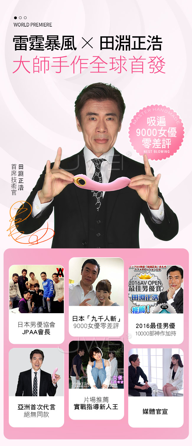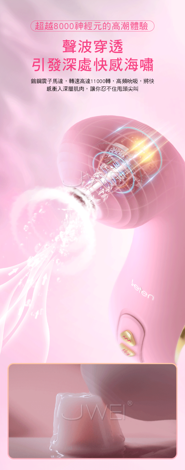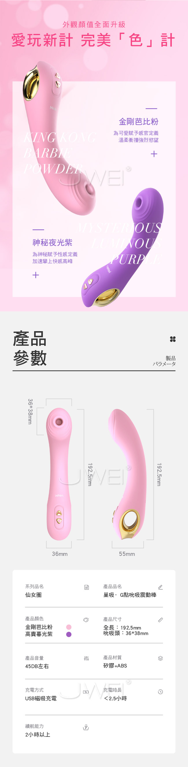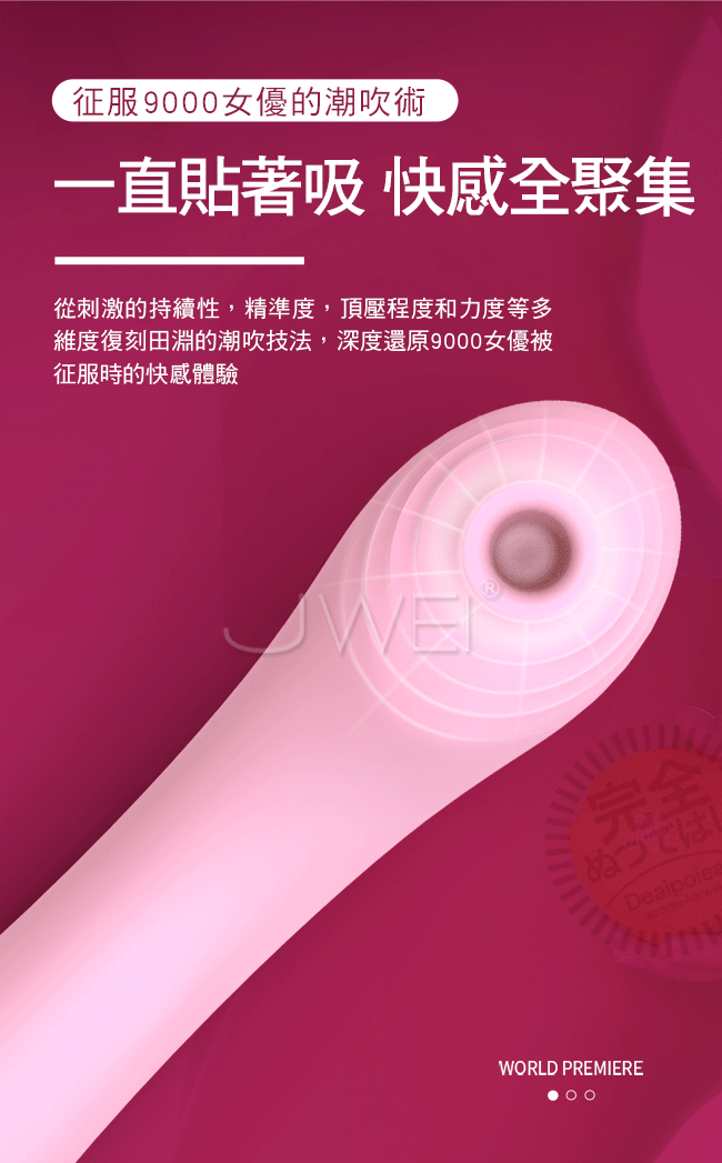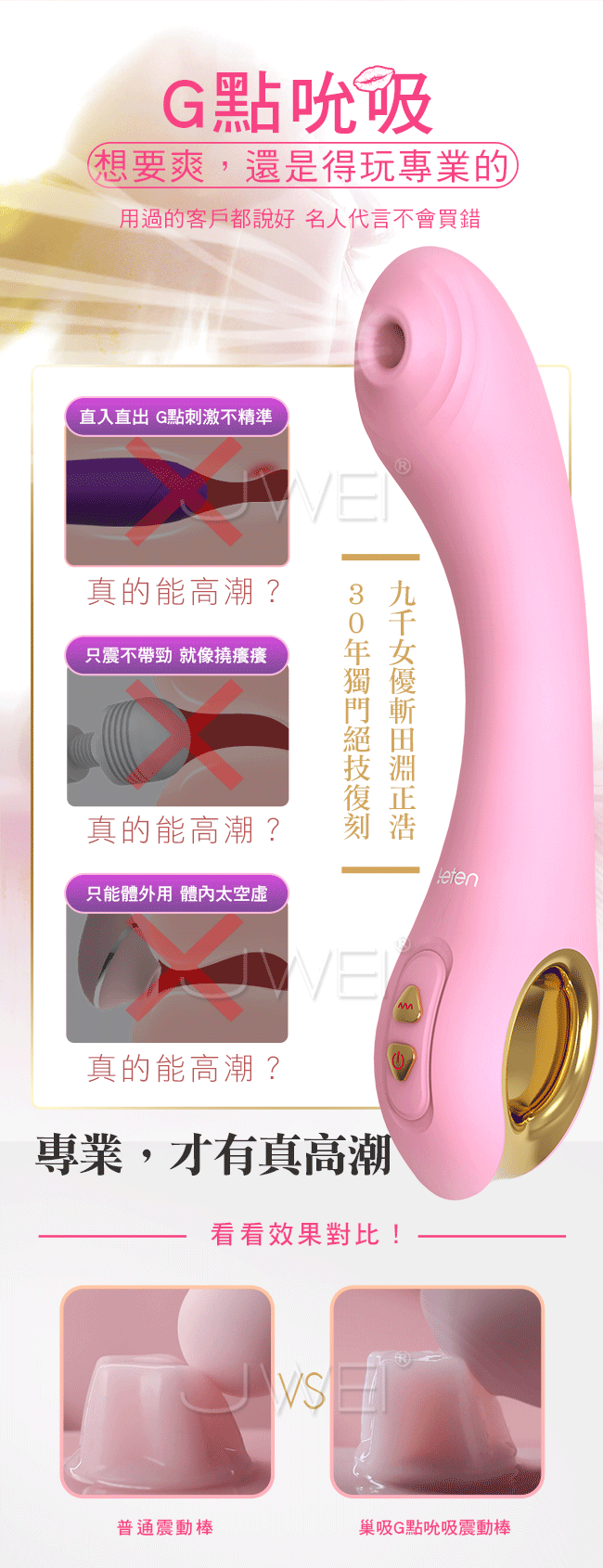 與田淵正浩連手打造大師級吸吮高潮神技,巢吸G點吸吮震動棒精準吮吸G點深入刺激更聚焦快感遍全身體驗時間長。從刺激的持續性,精準度,頂壓程度和力度等多維度復刻田淵的潮吹技法,深度還原9000名女優被征服時的快感體驗。擁有10頻花式吮吸,每玩一次都是新體驗一棒頂多棒。擁有智能恆溫功能溫暖你的花芯,從此拒絕冷冰冰的棒子。