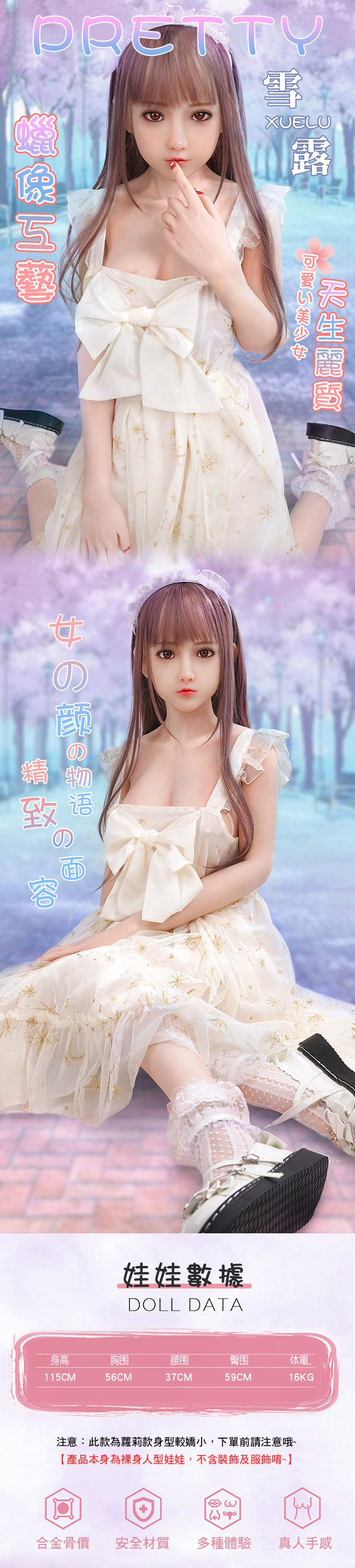 | 稚嫩少女雪露(115cm).可站立全實體矽膠不銹鋼變形骨骼娃娃