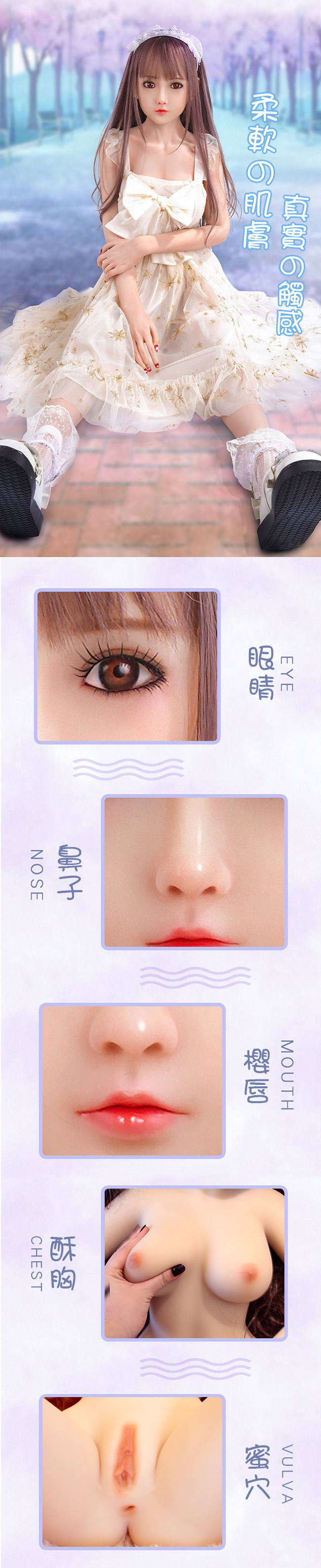 ■使用部位:陰交、肛交、口交、乳交四種性交用法,內置合金骨骼可固定姿勢,關節可動,可隨意變更姿勢
