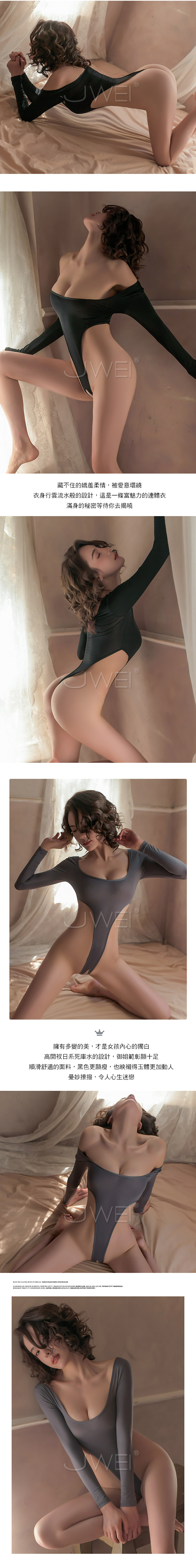| 戀曲秘事.性感冰絲鏤空高衩開襠連體衣-灰色/黑色