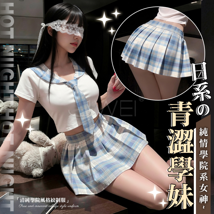 | 私房愛戀.性感女僕裝套装6件組(粉紫格)