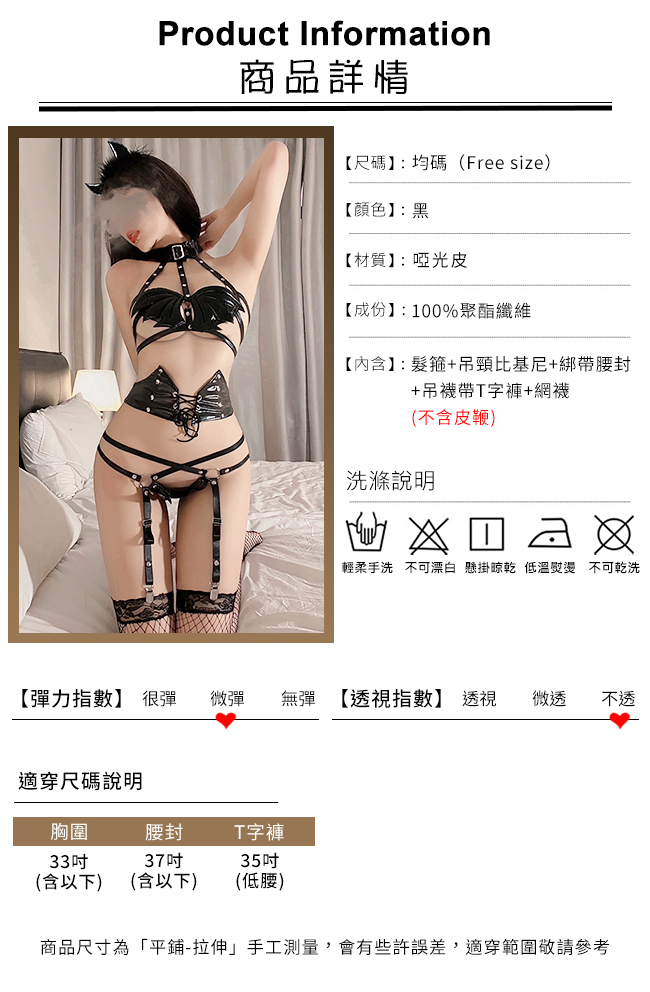 ►您現在的位置:首頁>情趣吊襪帶!惡魔立體翅膀遮胸綁帶腰封鉚釘點綴五件式套裝