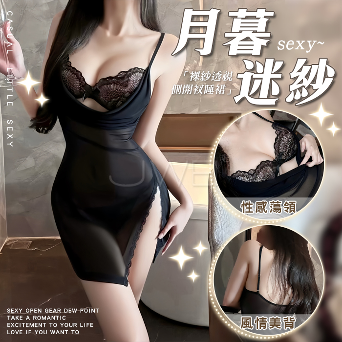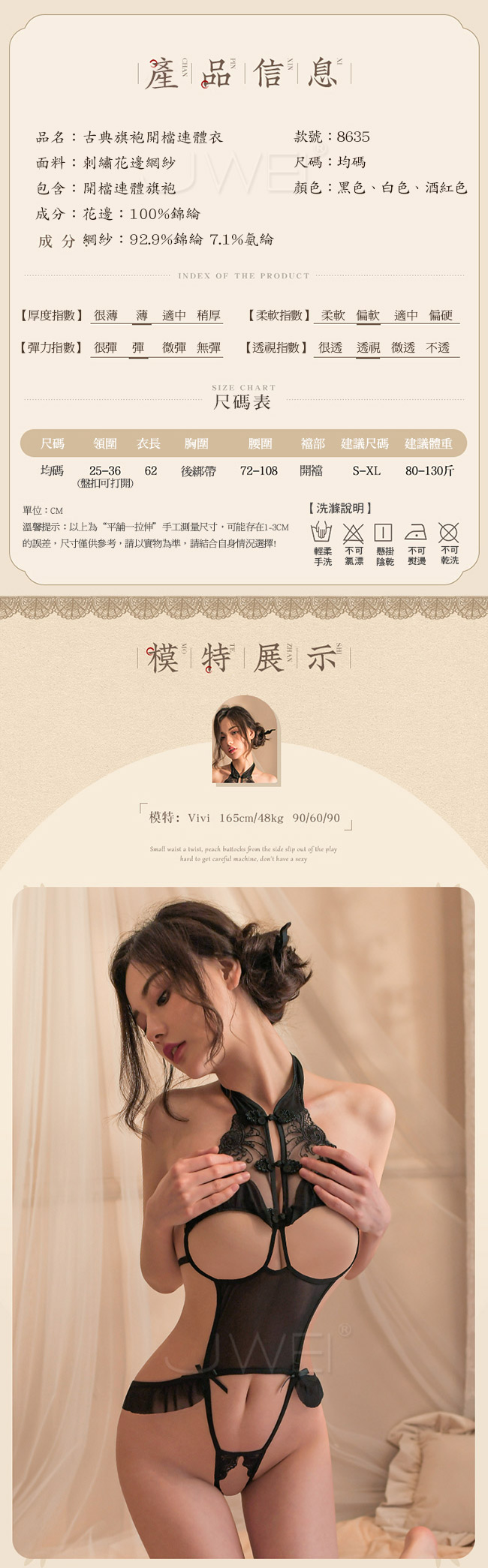 | 風韻佳人.古典旗袍刺繡花邊挖空露乳開襠露臀連體衣(黑色)