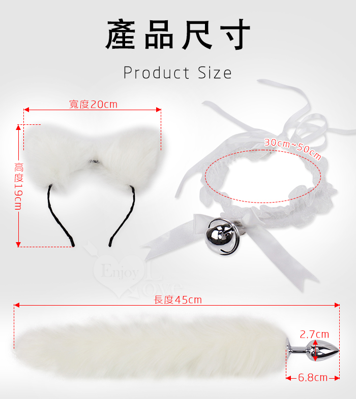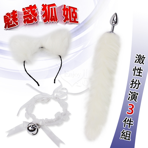 魅惑狐姬 ‧ 激性扮演3件組 狐狸尾巴/毛絨髮箍/鈴鐺頸圈﹝白﹞