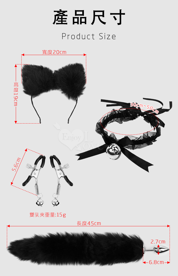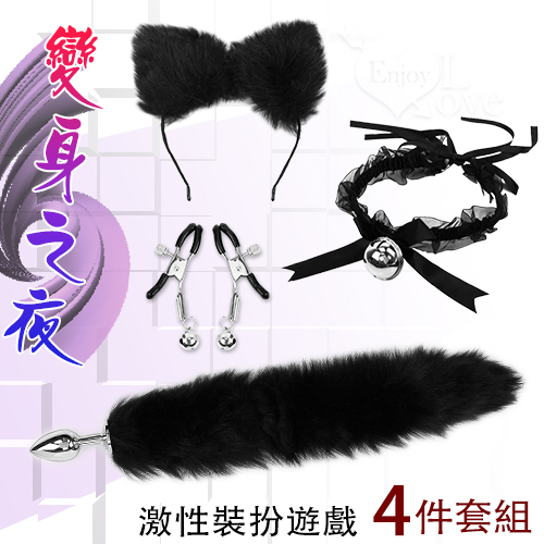 | 變身之夜 !激性裝扮遊戲4件套組﹝狐狸尾巴+毛絨髮箍+鈴鐺頸圈+鈴鐺乳夾﹞黑