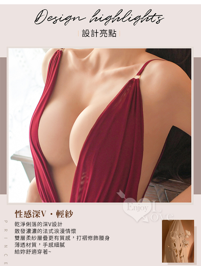 | 狂野連身衣!可調節細肩柔紗緹花珍珠裸臀開襠裝﹝紅﹞