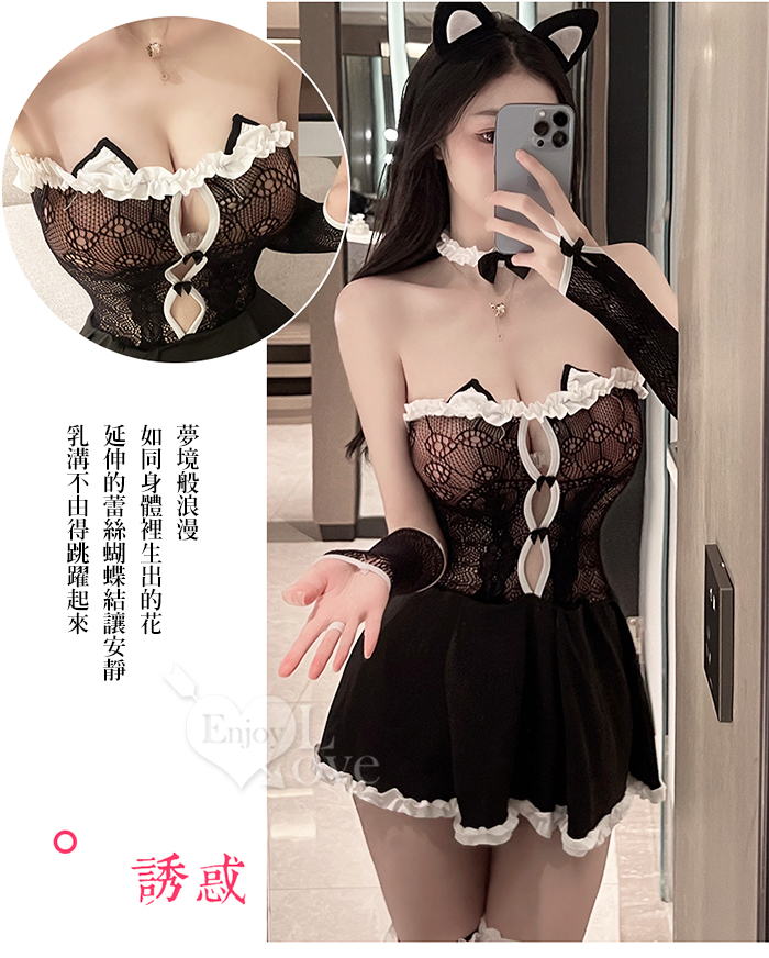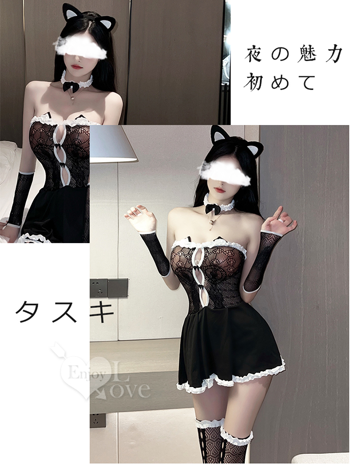 ►您現在的位置:首頁>極性貓裝!性感小野貓木耳花邊平口網衣裙五件式套裝