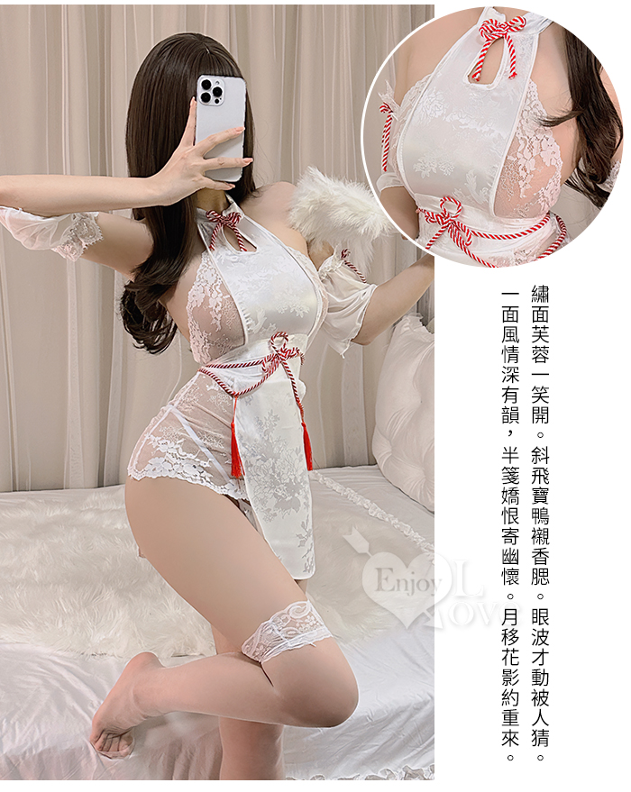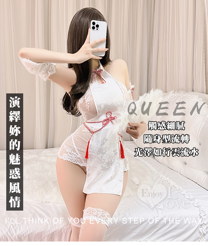 ►您現在的位置:首頁>仿旗袍睡衣!古風立領紅白抽繩透視蕾絲四件式套裝
