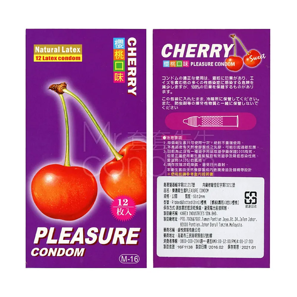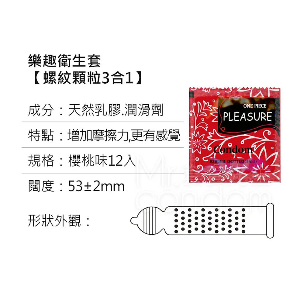 樂趣衛生套螺紋顆粒(3合1)櫻桃12入 M16