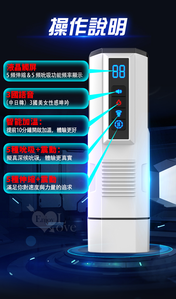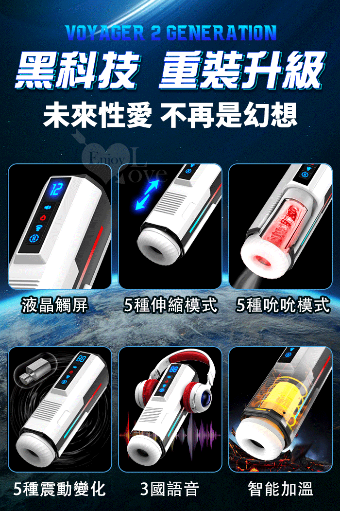►您現在的位置:首頁>✦限量出清✦Hgod 旅行者2代 ‧ 液晶觸屏全自動猛烈抽插+活塞伸縮+互動發音+真空吸吮口交飛機自慰杯﹝5種伸縮衝擊+5頻吸吮震動+3國語音耳機+USB充電﹞