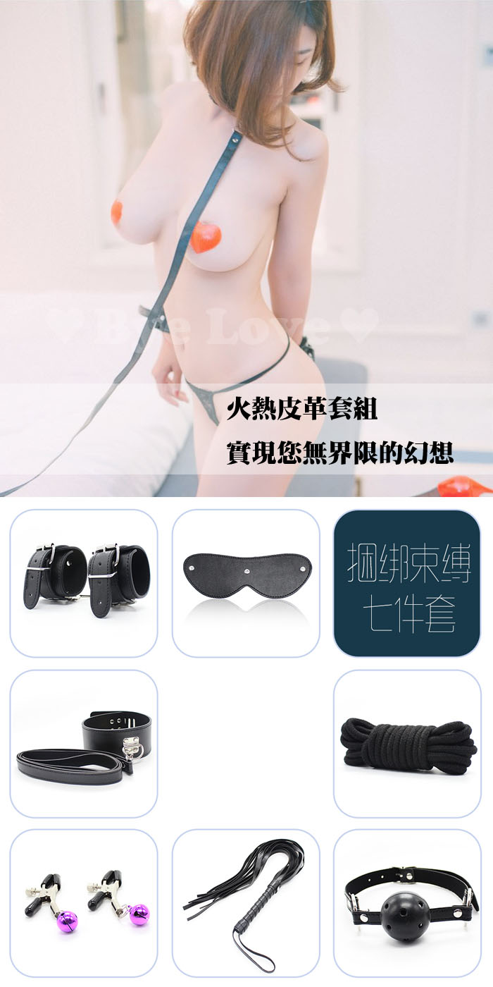 ►您現在的位置:首頁>滿3000元贈品 SM 火熱皮革情趣7件套-紅/黑色(眼罩+手銬+皮鞭+棉繩+口塞+乳夾+脖圍)