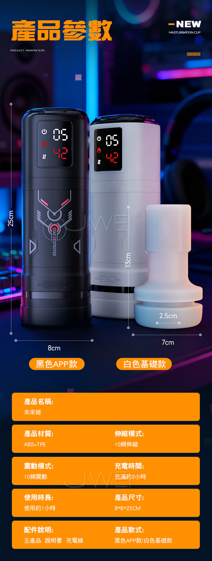 ■功能:10頻震動、10種吮吸、APP智控、加溫