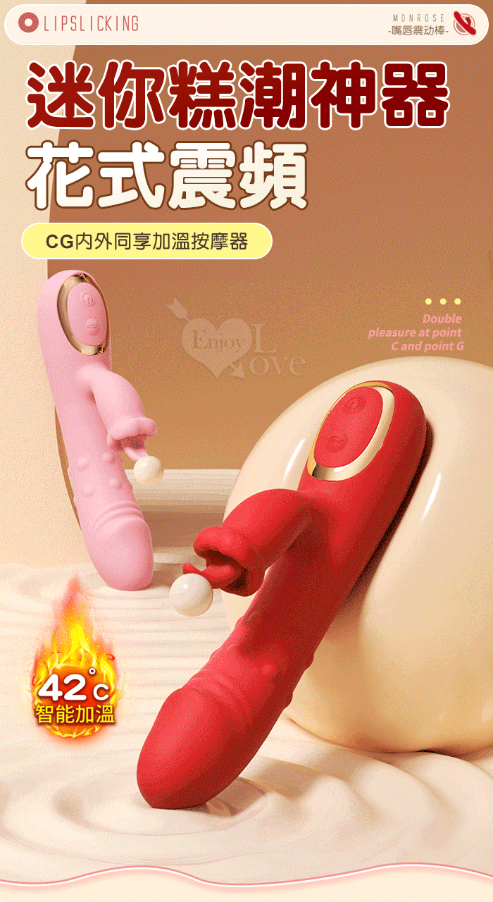 ROSELEX 迷你糕潮神器 雙10頻雙激震舌擊點 CG內外同享加溫按摩器 - 紅